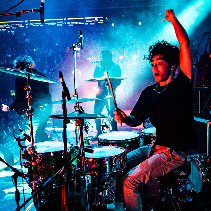Meet Joey Castro – a Powerhouse drummer known for his High-energy, Hard-Hitting Performances. He has played alongside Blink-182, Missio, Poorstacy, The Haunt and many more; delivering electrifying performances that leave audiences wanting more. Behind the kit since the age of two, Joey has spent years mastering his craft, combining technical precision with raw intensity to create unforgettable live experiences. Whether in the studio or on the road, Joey is ready to take any performance to the next level!