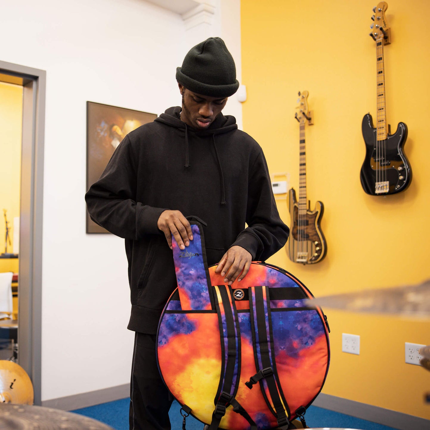 A durable, functional cymbal bag designed specifically for student drummers. Perfect for going to school, lessons or practice.