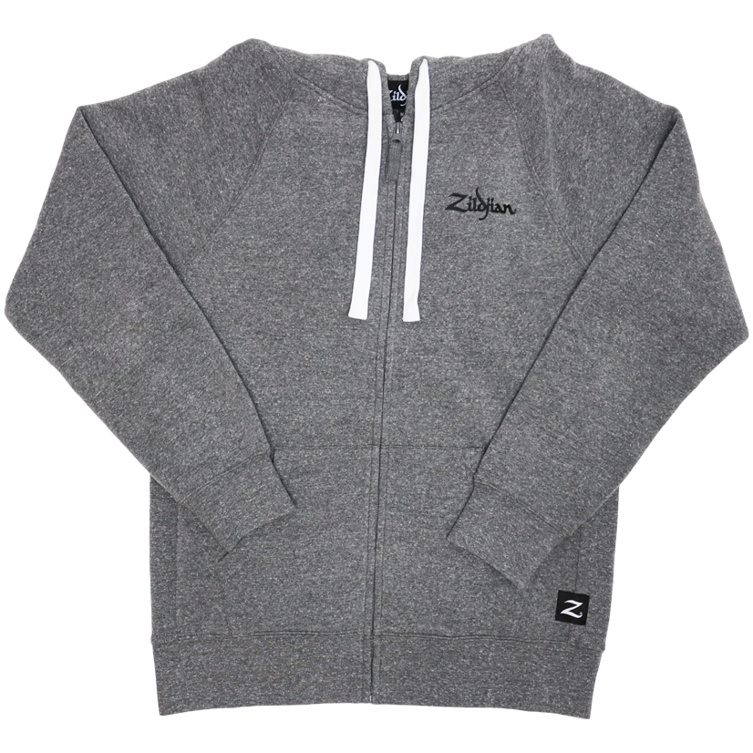 Made from super soft, thick and cozy tri-blend fleece, the Zildjian Gray Zip Up Logo Hoodie combines classic style with premium construction. This heather gray hoodie has a thick drawstring, side pockets and a woven Z tag on the bottom left side. Timeless graphics include a Zildjian logo on the left chest and a large Zildjian trademark graphic on the back, which is large enough to show even with the hood down. Available in unisex sizes XS through 3XL, this warm, plush hoodie is the perfect go-to for every drummer.