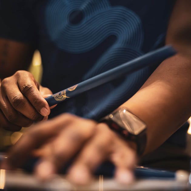 This limited edition Zildjian 400th Anniversary design celebrates the birth of jazz music and the role of Zildjian cymbals during that era. During the 1930s to 1950s, Avedis Zildjian was quick to embrace the talented musicians who were leading the jazz movement. Having been discriminated against during his own childhood as an Armenian living in Turkey, Avedis vowed there would be no place for discrimination at the Zildjian Company. He worked closely with African-American artists like Chick Webb and Papa Jo Jones (who helped Avedis develop the HiHat). During this period of innovation the "Paper Thin Crash," "Ride," "Splash," "HiHat," and "Sizzle" cymbals were all developed and named by Avedis. To celebrate this rich time in Zildjian history, the Jazz design evokes the collaborative spirit and continuous movement of jazz music.